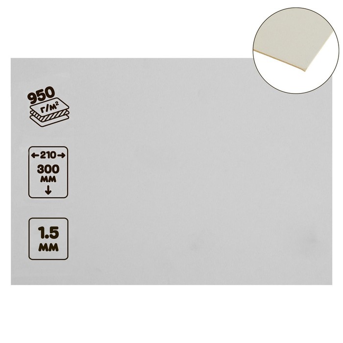 Картон переплётный (обложечный) 1.5 мм, 21 х 30 см, 950 г/м2, белый