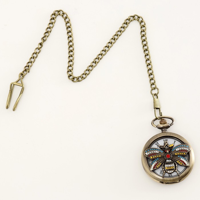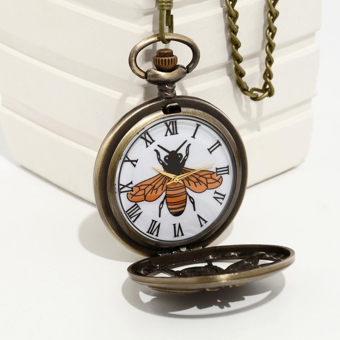 Часы карманные "Оса", кварцевые, d циферблата-4.7 см, цепочка l-38 см