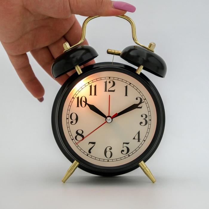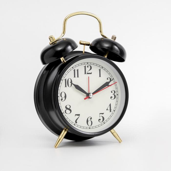 Будильник, настольные часы "Классика", дискретный ход, 12.5 х 10.5 х 3.8 см, черный