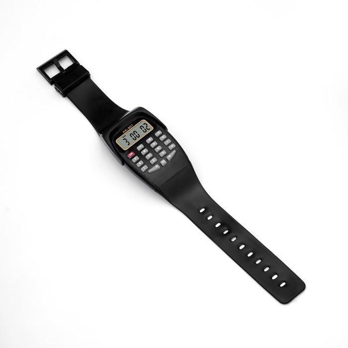 Часы наручные электронные детские, с калькулятором, ремешок силикон, l-21 см, черные