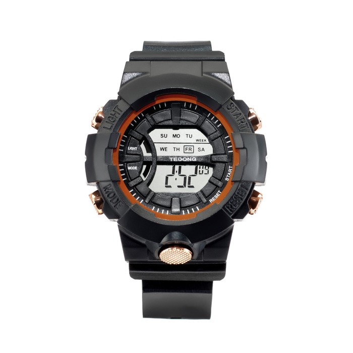 Часы наручные электронные, календарь, ремешок силикон, оранжевые