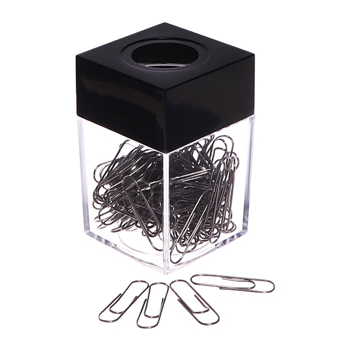 Скрепочница квадратная с магнитом прозрачная пластик, скрепки 100 штук