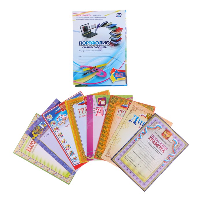Портфолио в папке с креплением «Школьника», 10 листов-разделителей, 21,5 х 30 см