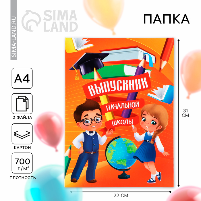 Папка на Выпускной «Выпускник начальной школы», с 2-мя файлами, А4.