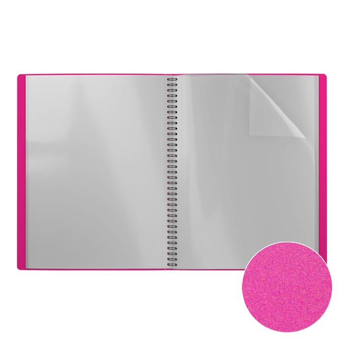 - Папка содержит 20 прозрачных листов-карманов, надежно скрепленных двойной евроспиралью.