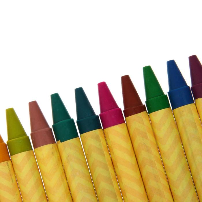 Рисование восковыми мелками способствует развитию мелкой моторики рук, воображения и помогает формировать цветовое восприятие. Идеальны для рисования на бумаге любого типа, а также дереве, картоне и стекле. Детские восковые карандаши обладают повышенной мягкостью, так как в новой формуле содержится увеличенное количество пчелиного воска. Детские восковые мелки для рисования не пачкают руки - цветные карандаши идут в индивидуальной бумажной обертке, которые также не дают ручке скользить. Набор восковых цветных карандашей легко затачиваются и стираются ластиком.