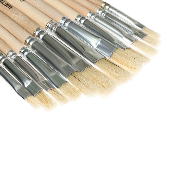 Набор кистей щетина 12 штук: № 1, 2, 3, 4, 5, 6, 7, 8, 9, 10, 11, 12, плоские