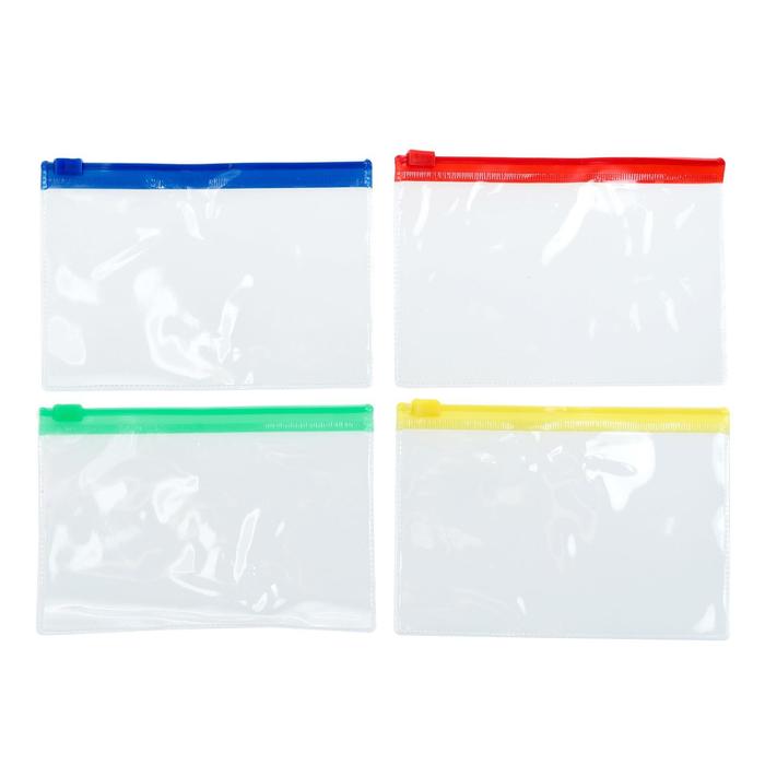 Папка-конверт на ZIP-молнии Calligrata А65 (122 х 240 мм), 100 мкм, прозрачная, МИКС