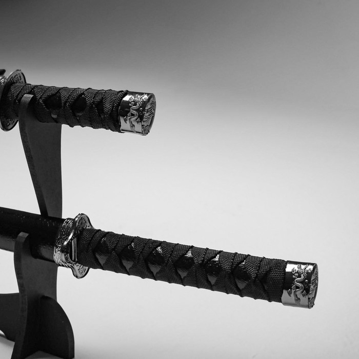 Сувенирное оружие «Катана на подставке», чёрные ножны с красными ромбами, 20см