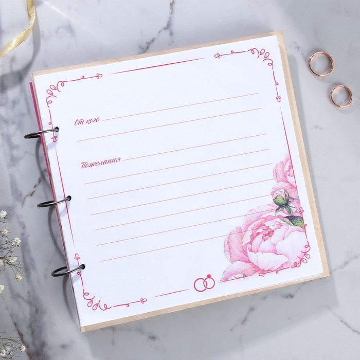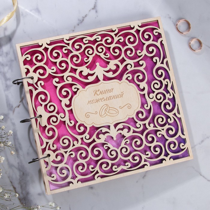 Гостевая книга с деревянной обложкой на кольцах. Записывать пожелания в эту книгу понравится всем гостям. А вам понравится то, что через много много лет вы сможете окунуться еще раз в атмосферу вашего праздника. Идеально для свадьбы в стиле бохо, рустик, минимализм, прованс. В книге 42 односторонних листа размером 20х20 см плотностью 80 гр., первый лист титульный, второй лист для молодоженов с указанием даты торжества и имён, последующие 40 листов для искренних пожеланий счастливой семейной жизни жениху и невесте.