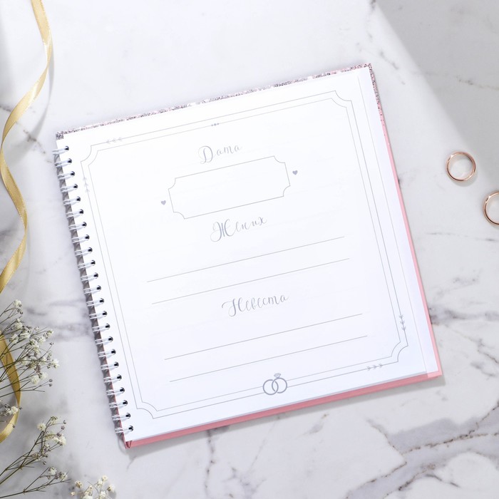 Гостевая книга - прекрасный атрибут свадебного вечера. Записывать пожелания в эту книгу понравится всем гостям. А вам понравится то, что через много много лет вы сможете окунуться еще раз в атмосферу вашего праздника. Идеально для свадьбы в стиле бохо, рустик, минимализм, прованс. Книга сделана из преплётного картона 1,25 мм с глянцевой ламинацией. В книге 40 односторонних листа размером 20х20 см плотностью 80 гр., первый лист для молодоженов с указанием даты торжества и имён, последующие 39 листов для искренних пожеланий счастливой семейной жизни жениху и невесте.