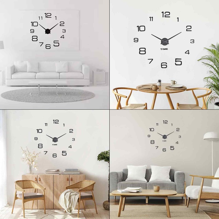 Оригинальные часы-наклейка имеют липкий слой, который позволяет разместить их на любой поверхности: обоях, дереве, пластике, керамике или металле. В комплект входит шаблон. С его помощью вы выберете нужный диаметр часов и сделаете отметки на стене, чтобы приклеить элементы.