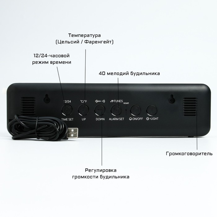 Часы электронные настольные "Кержан", белая индикация, от USB, 7х14 см