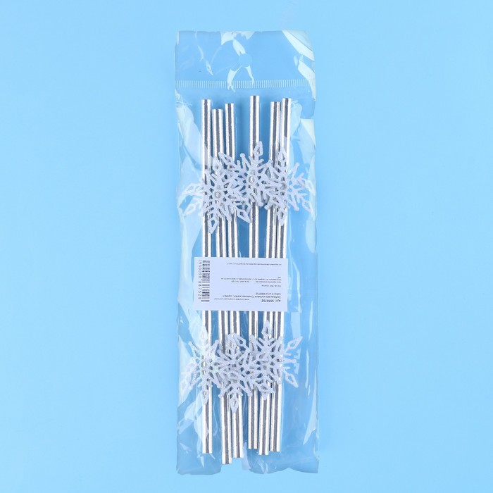 Трубочки для коктелей одноразовые «Снежинки», уголки, в наборе 6 штук, серебро