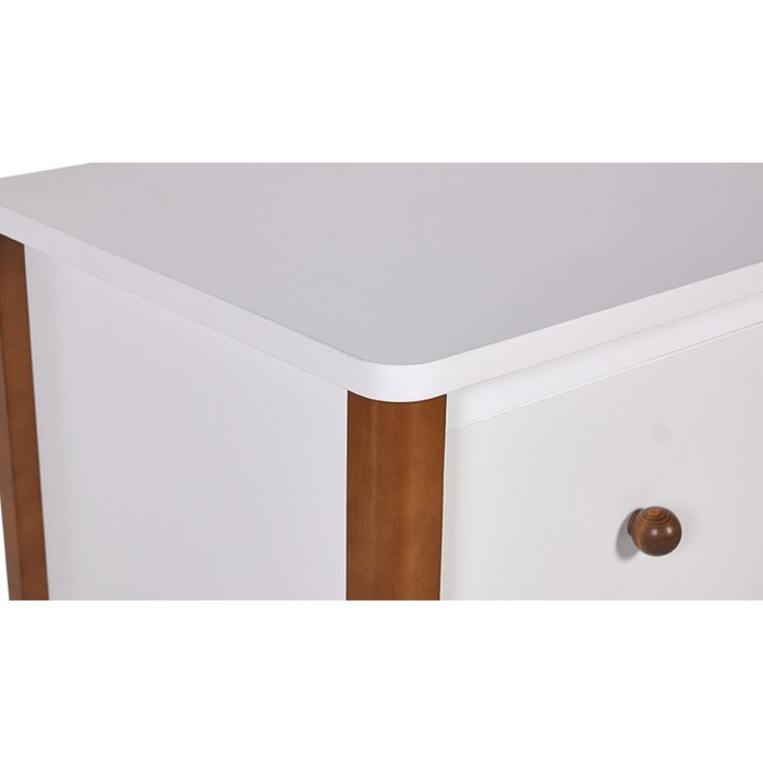 Также комод облицован противоударной ПВХ кромкой 2 мм. Данный вид кромки защищает мебельные части от повреждений и воздействия влаги, является безопасным в использовании (невозможно порезаться) и не подвержен деформации за счёт своей толщины.