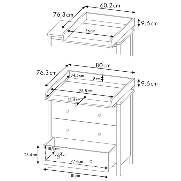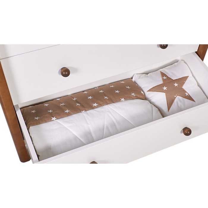 Ящики оснащены шариковыми направляющими, что обеспечивает лёгкое и плавное открывание. В них можно хранить все необходимые вещи и аксессуары для ребёнка, такие как памперсы, одежда, игрушки и другие предметы первой необходимости.