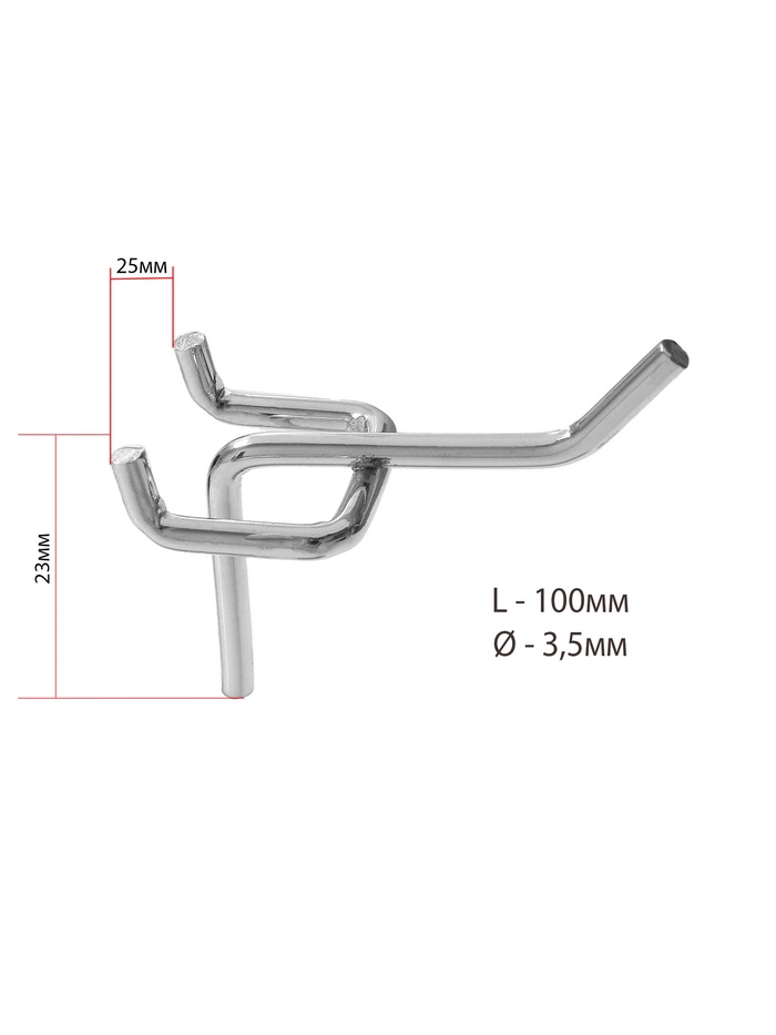 Крючок двойной для металл.перфорированной панели, шаг 50 мм, d=4 мм, L=10, цвет хром