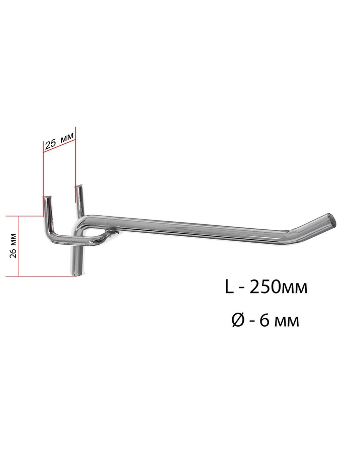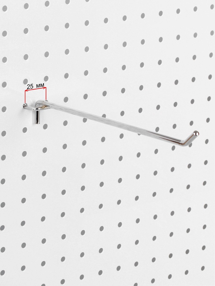 Крючок одинарный для металлической перфорированной панели, d=6мм, L=25, цвет хром
