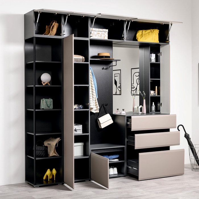 Прихожая «МОБИ. Сидней» компоновка 4, 2280х413х2400 мм, Антрацит/Веллюто Капучино