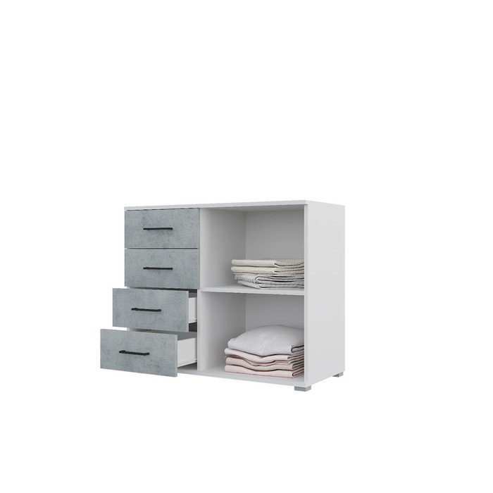 Спальный гарнитур Бостон, Кровать 1600, Комод, 2 тумбы, Шкаф 2000, Белый/Бетон