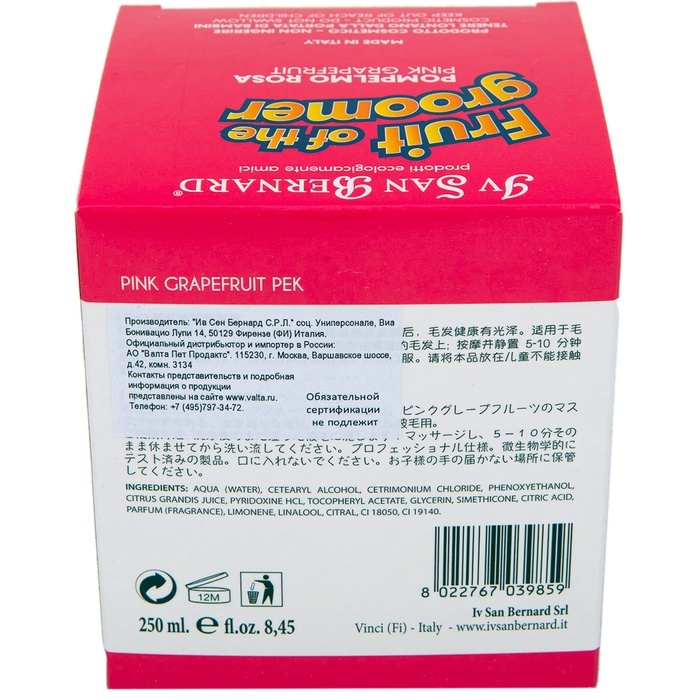 Маска Iv San Bernard Fruit of the Groomer Pink Grapefruit восстанавливающая для шерсти средней длины