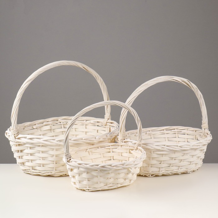 Набор корзин, 3 шт, 36х14/39 см, 30х12/34 см, 23х8/25 см, ива отбеленная