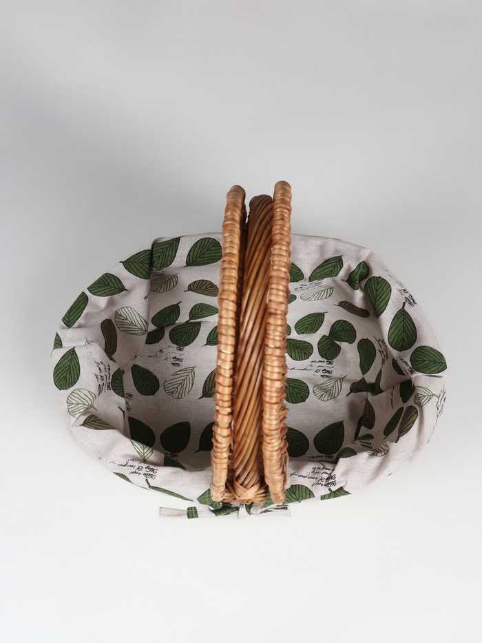 Плетёная корзина-лукошко, ткань внутри, 2е крышки, 33×25 см, Н 17/13 см, Н с ручкой 30 см, дно 23×16 см 1
