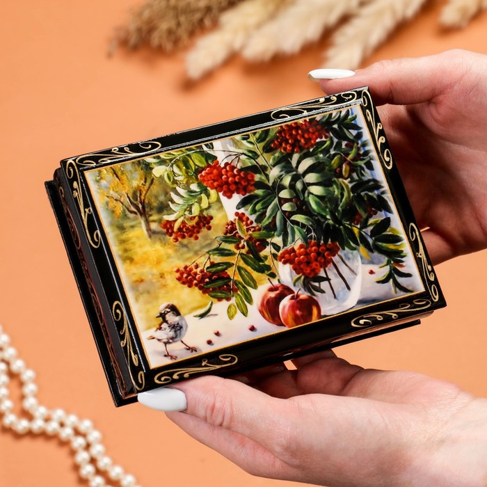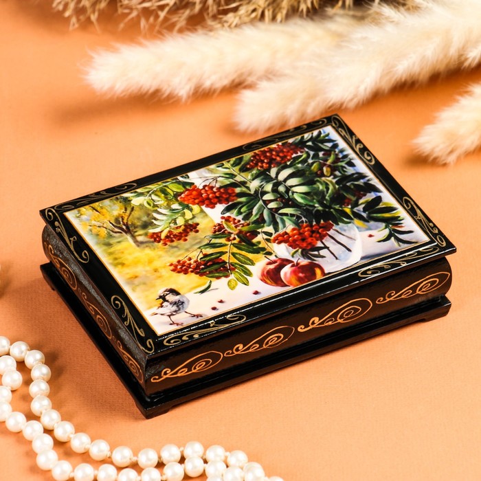 Шкатулка «Рябина на окне», 10×14 см, лаковая миниатюра