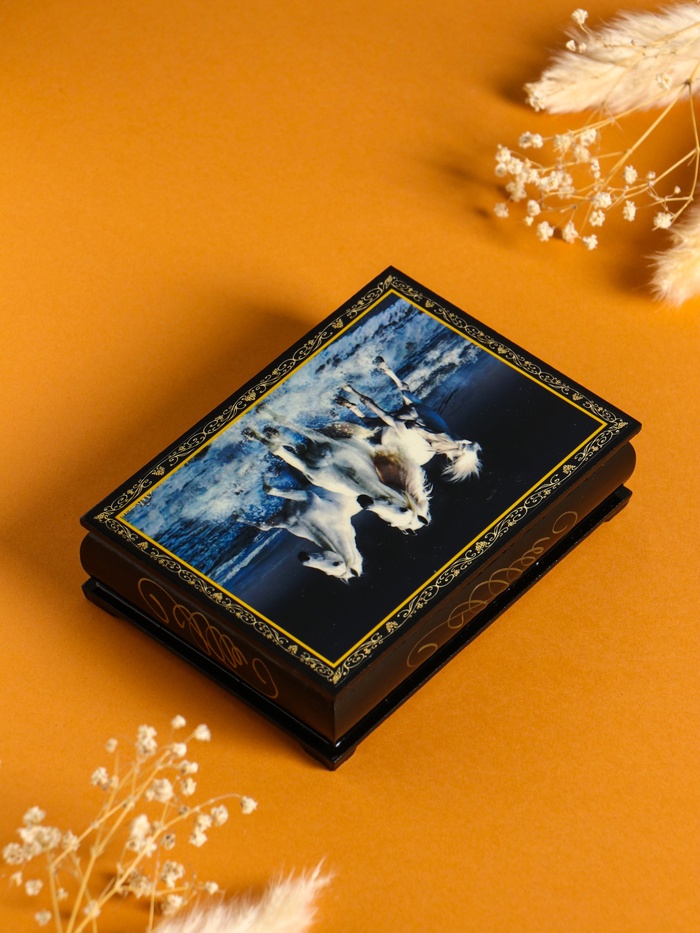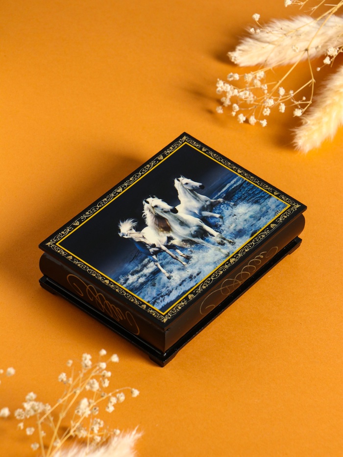 Шкатулка «Три коня», 10×14 см, лаковая миниатюра