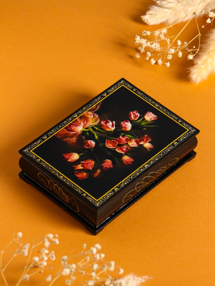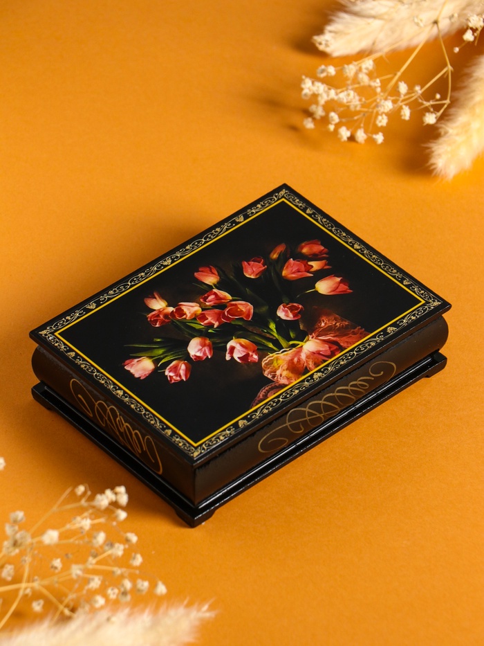 Шкатулка «Тюльпаны», 10×14 см, лаковая миниатюра