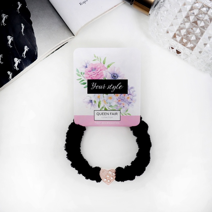 Резинка для волос "Блестящая сказка" сердце, 7 см, чёрный