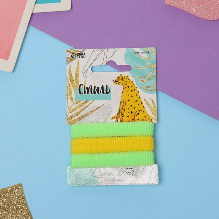 Резинка для волос "Стиль" (набор 3 шт) 5,5 см, салатовый жёлтый