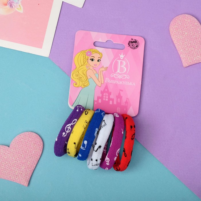 Резинка для волос "Спорт" (набор 6 шт) скрипичный ключ, микс