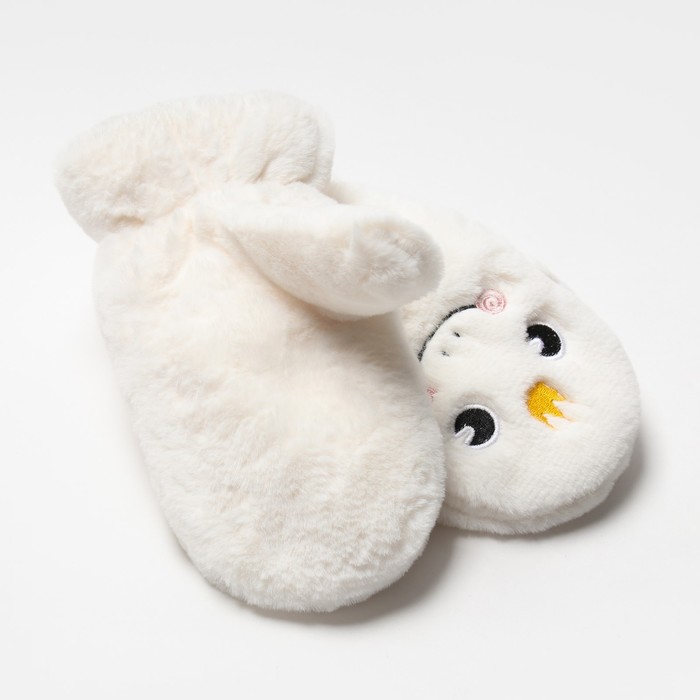 Варежки подростковые на иск.меху MINAKU Корона 19 см молочный