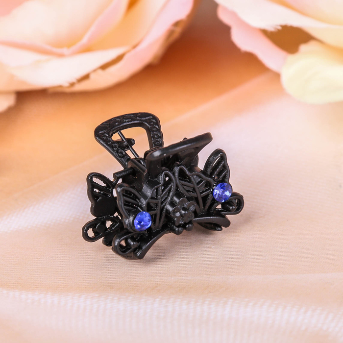 Краб для волос "Чёрный ажур" цветок, 2,3 см, серебро