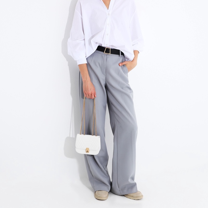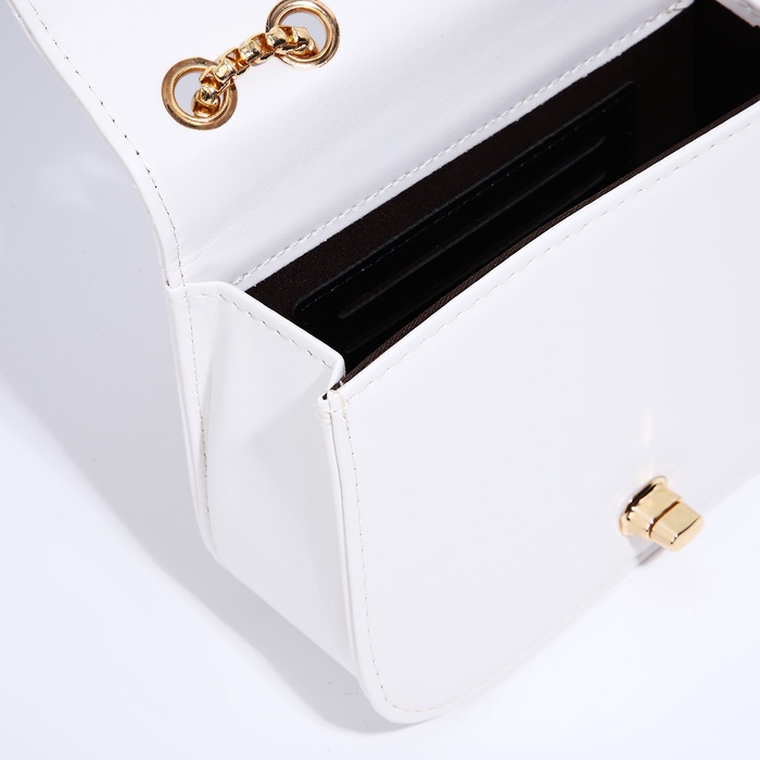 Сумка-мессенджер из искусственной кожи с цепью, 14×20 см, цвет молочный