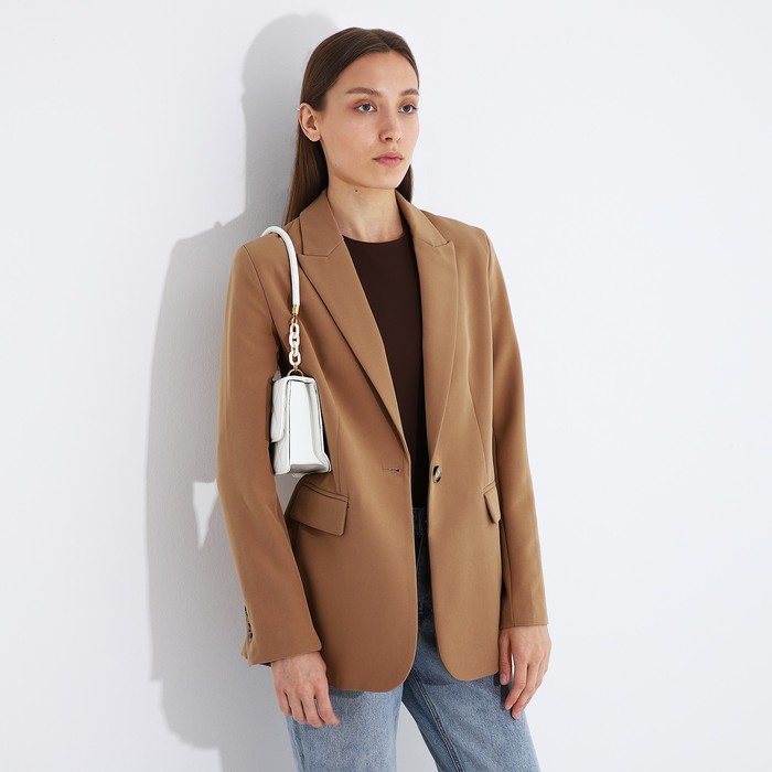 Сумка-мессенджер из искусственной кожи с цепью, 14×20 см, цвет молочный