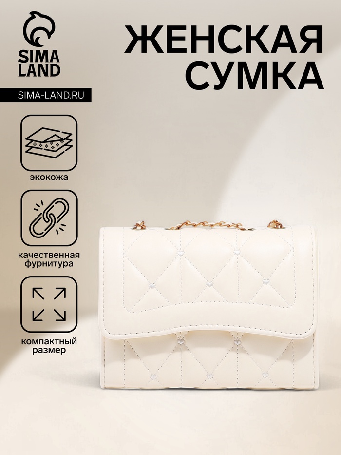 Сумка-мессенджер из искусственной кожи с цепью, 14×20 см, цвет молочный