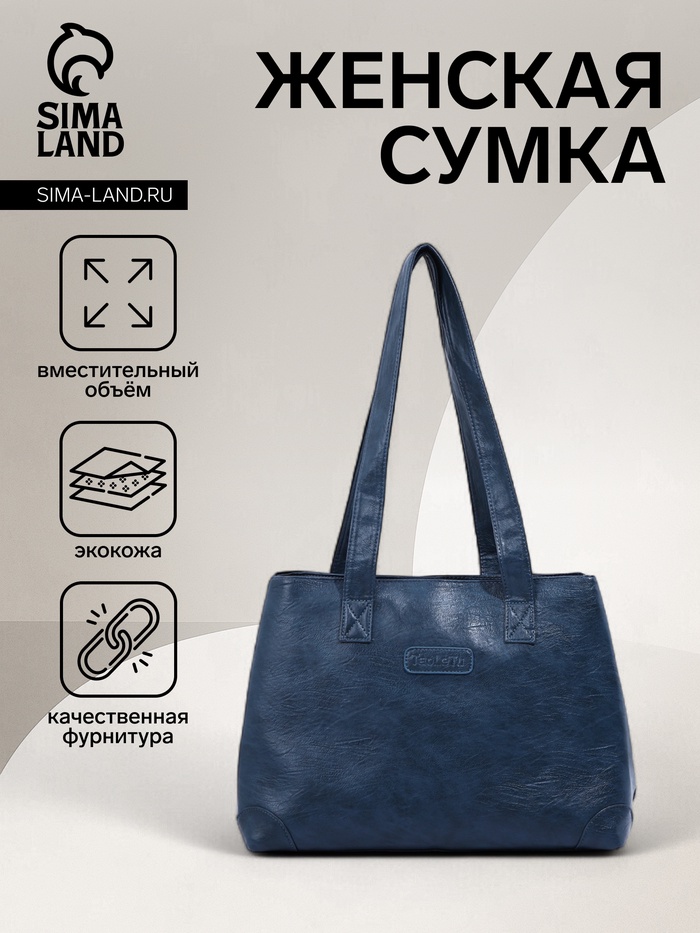 Сумка-тоут TEXTURA на молнии, наружный карман, длинный ремень, цвет чёрный