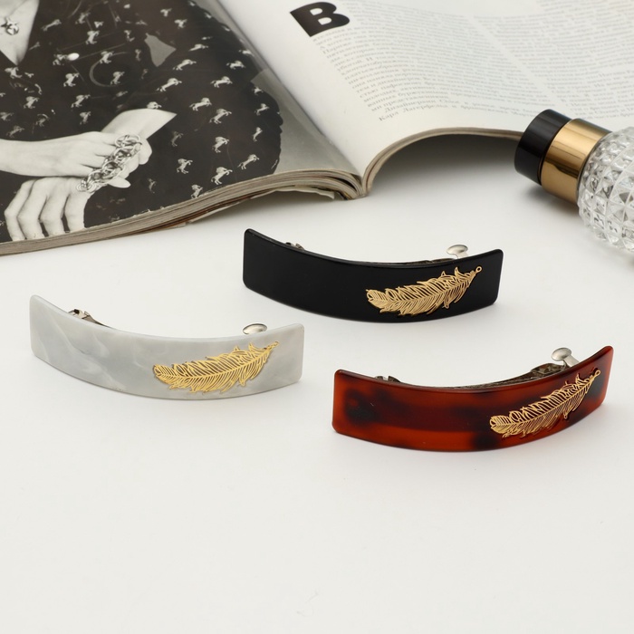 Заколка-автомат для волос "Бэлла" 10,5 см прямоугольник перо, микс