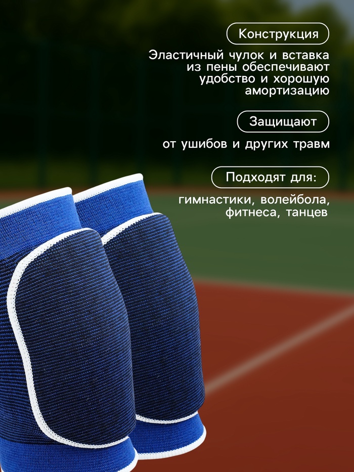 Наколенники защищают спортсмена от ушибов и других травм. Они легко надеваются благодаря эластичности ткани. В комплект входят две штуки.