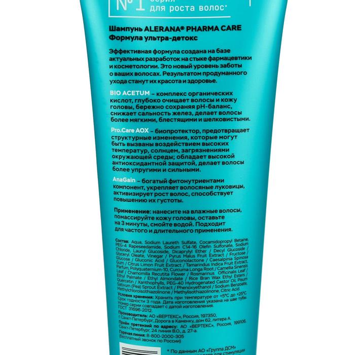 Шампунь для волос Alerana Pharma Care, формула ультра-детокс, 260 мл
