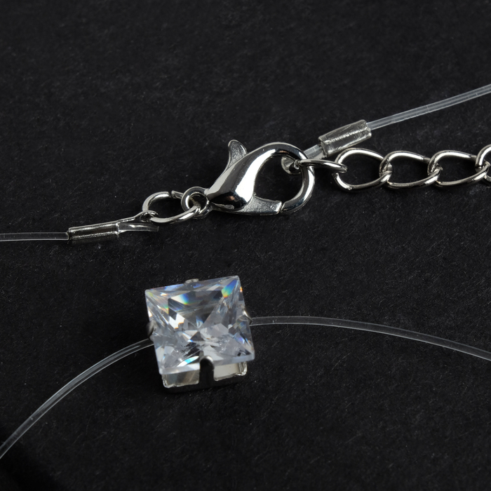 Кулон "На леске" циркония, квадрат, цвет белый в серебре, 30 см
