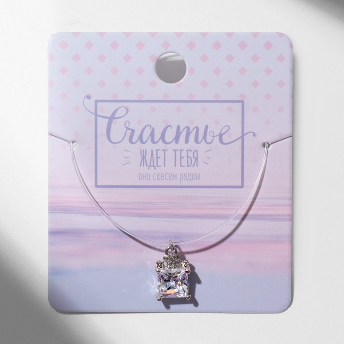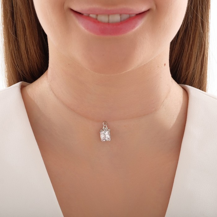 Кулон "На леске" циркония, квадрат, цвет белый в серебре, 30 см