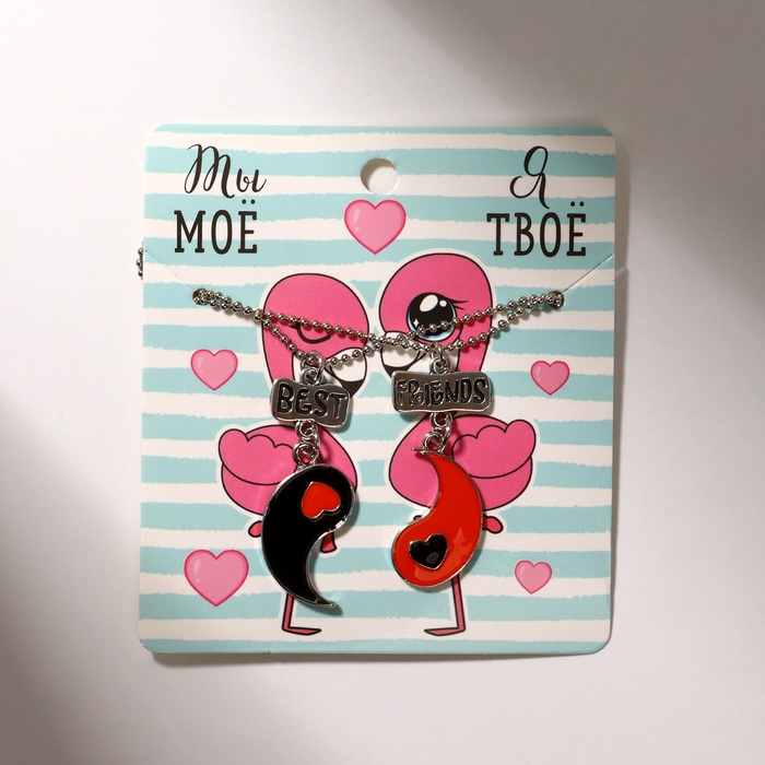 Кулоны "Неразлучники" инь-ян, цвет чёрно-розовый в серебре, 45 см