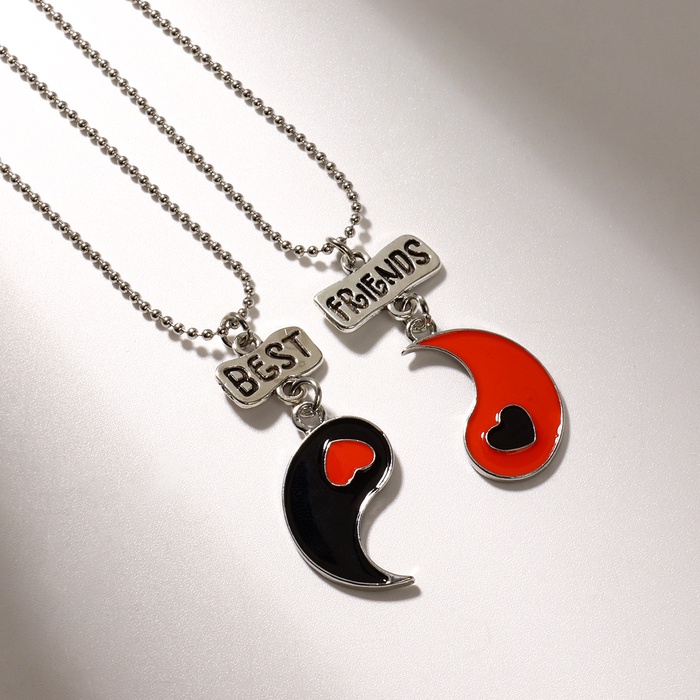 Кулоны "Неразлучники" Инь-ян, капли, цвет чёрно-белый в серебре, 45 см