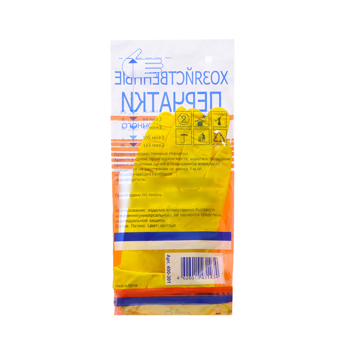 Перчатки латексные хозяйственны размер M, 30 гр, цвет желтый