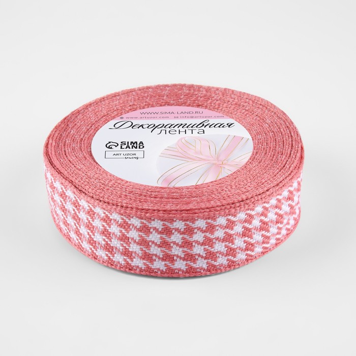 Лента декоративная «Гусиная лапка», 25 мм, 9 ± 0,5 м, цвет розовый/белый
