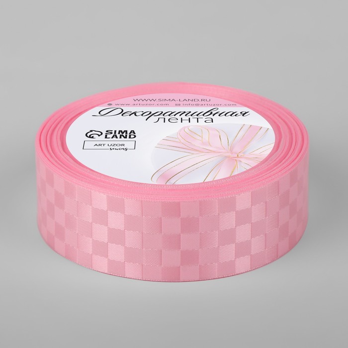 Лента декоративная «Квадраты», 25 мм × 9,1 ± 0,5 м, цвет розовый