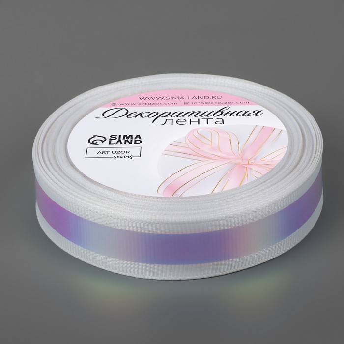 Лента декоративная, с голографией, 25 мм × 9,1 ± 0,5 м, цвет белый